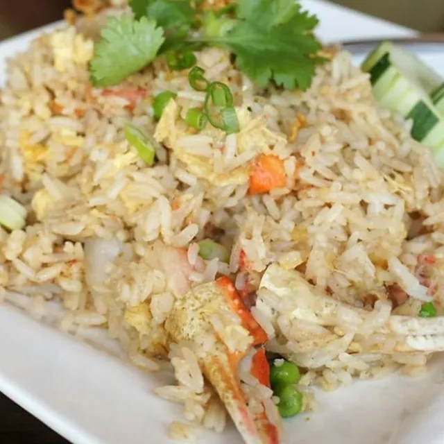 jasmine rice, stir-fried with egg, peas, carrots, green onions, crab meat & crab claw